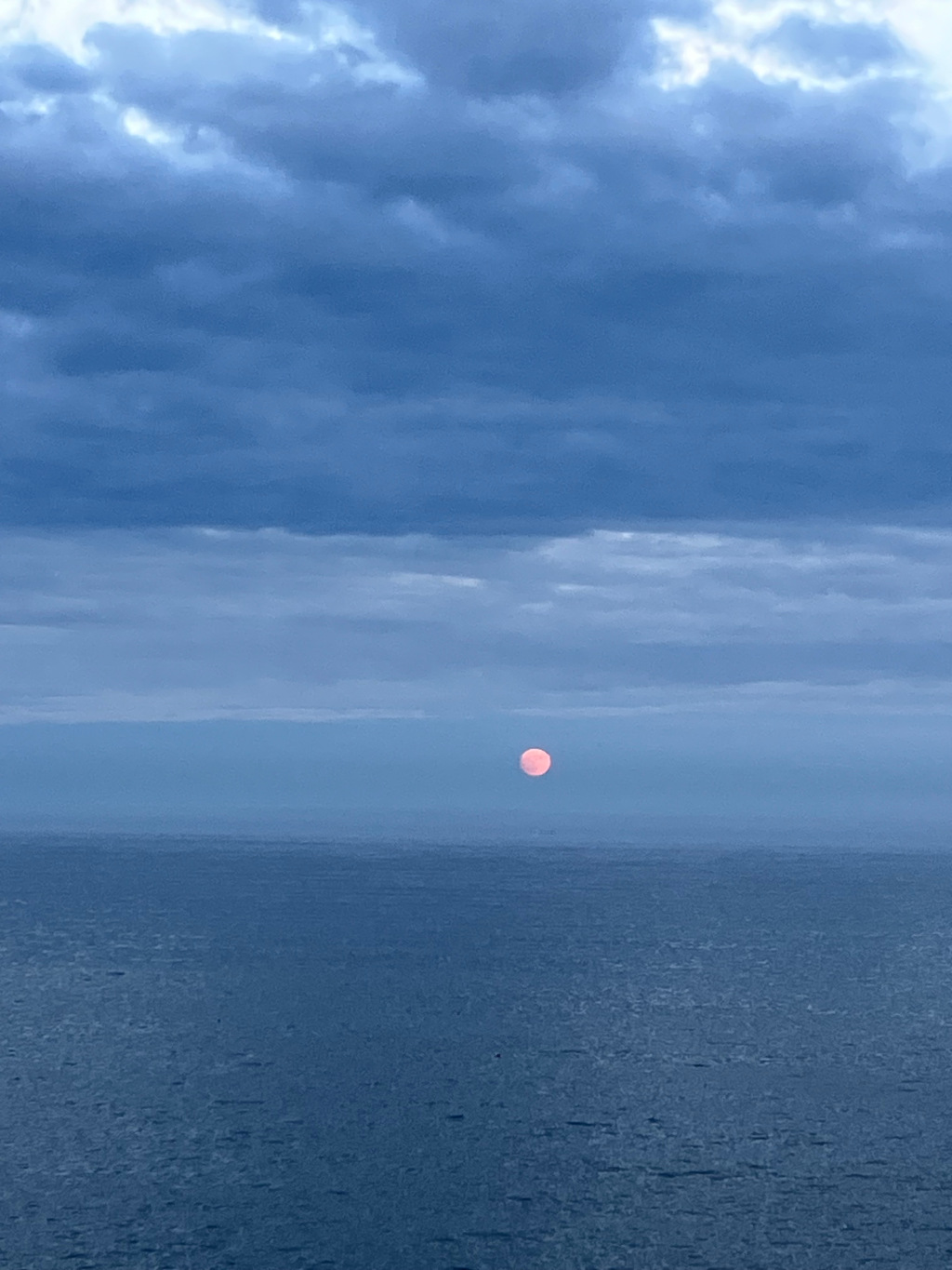Thursday was another overcast day. We crossed our fingers that we'd have enough power in the battery to last until we broke camp the next day, and went about the business of enjoying Mount Desert Island and Acadia National Park. And there's a lot to enjoy: we did several short hikes, and I did a bicycle ride along the Loop Road (which is surprisingly hilly: from Blackwoods to Jordan Pond, and back via ME-3 featured 900+ feet of climbing in ten miles). We didn't see the sunrise from the top of Cadillac Mountain (in July, you have to wake up at 4 AM to do that … assuming you're able to get tickets), but we did see the full moon rise from the rocks just outside the campground.